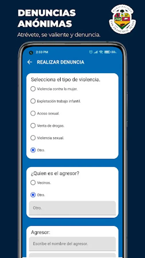 Application to make complaints completely anonymously, where the National Civil Police will follow up.