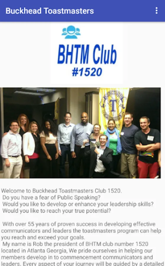 With over 50 plus years of proven success in developing effective communicators and leaders the toastmasters program can help you reach and exceed your goals. My name is James Bell the president of BHTM club number 1520 located in Atlanta Georgia, We pride ourselves in helping our members develop in to commencement communicators and leaders. Every aspect of your journey will be guided by a detailed manual.