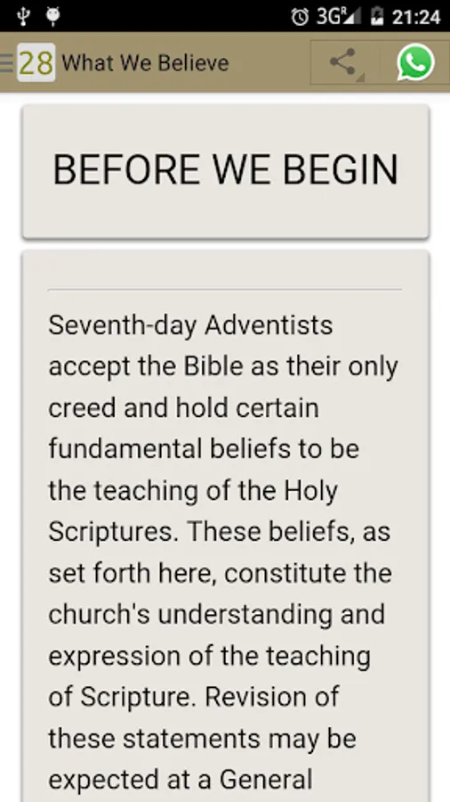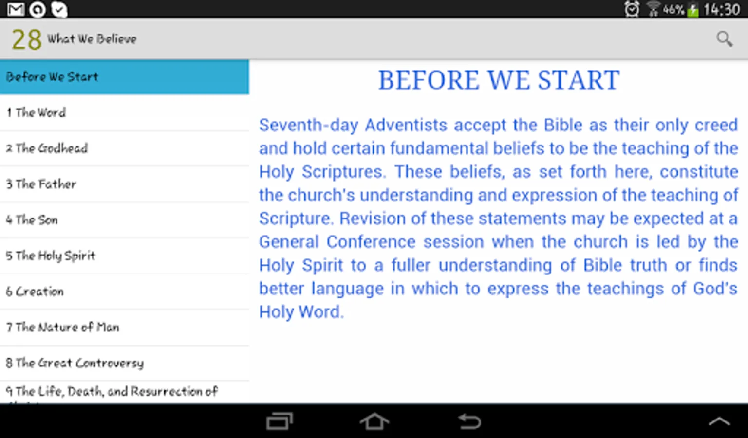 What Adventists Believe is an exposition of the 28 Fundamental Beliefs of the Seventh-day Adventist Church. It describes the 28 Beliefs of Seventh-Day Adventists, complete with references to the Bible texts. Adventists and other Christians worldwide will benefit from an understanding of these 28 Beliefs.