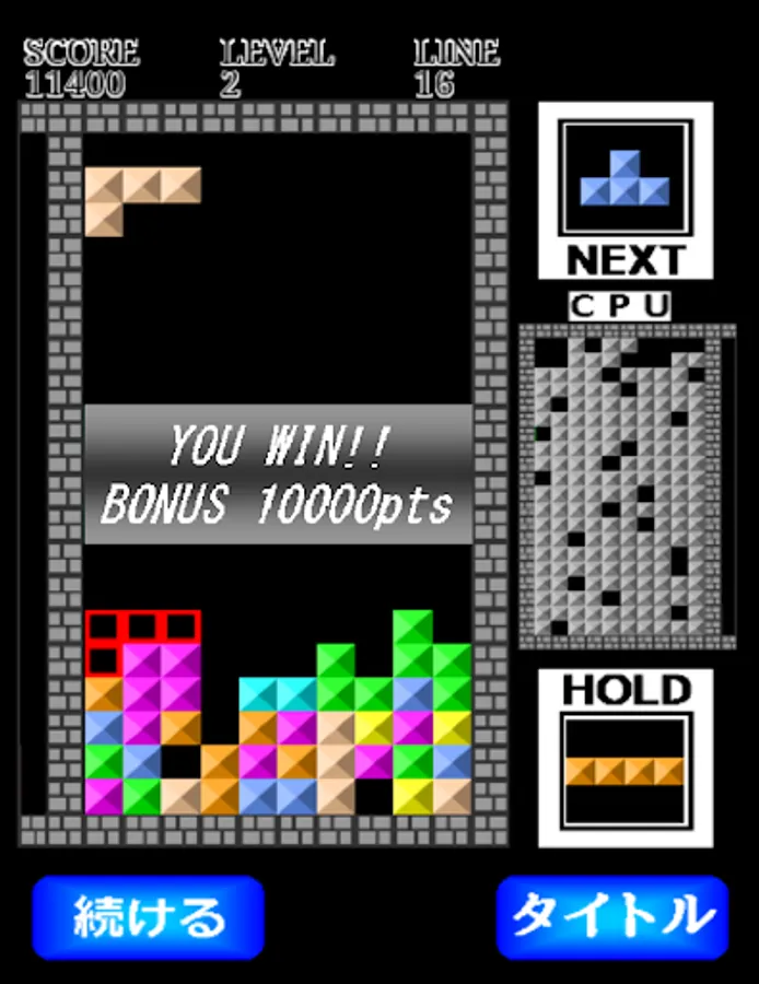 If the · CPU is the game is over, the case of the normal mode, the 10000-point bonus is added, the strength of the CPU will change. In the case of time trial, bonus due to the time taken will be added. However it is a no bonus if the time it took more than 1000.