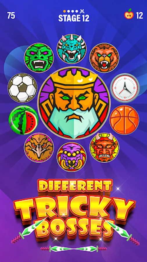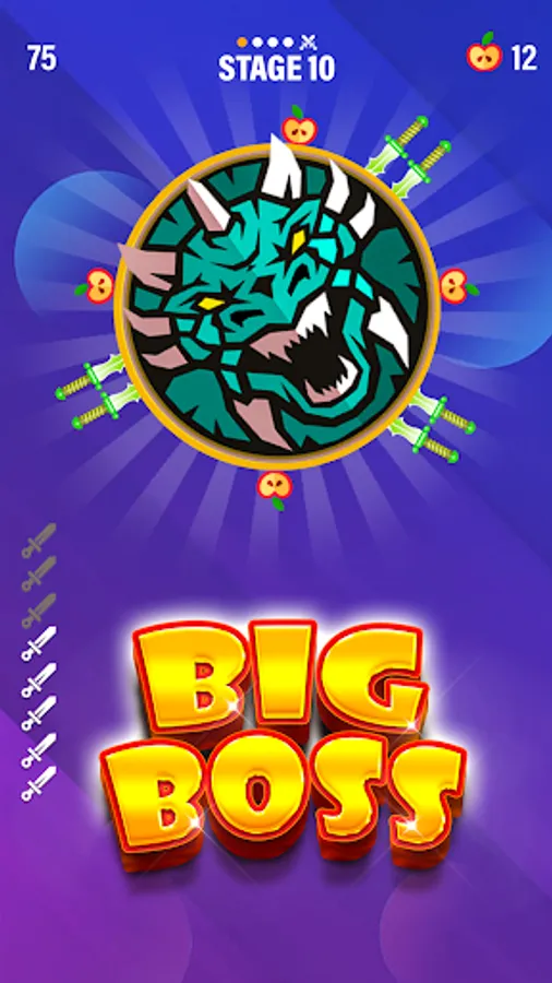 The target on the wheel, which must be struck by your knife, will continuously change speed and direction. If you become impatient (which you will), you'll hit another knife and the game will be ended. There are boss battles as well as an increase in difficulty as you advance through the stages. When you defeat a boss, you are rewarded with a variety of knives. The game is quite compelling.
