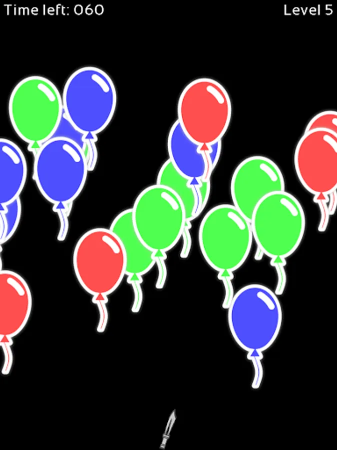 The aim of the game is to shoot all the colored balloons with a knife. Tap to the balloon you want to pop.