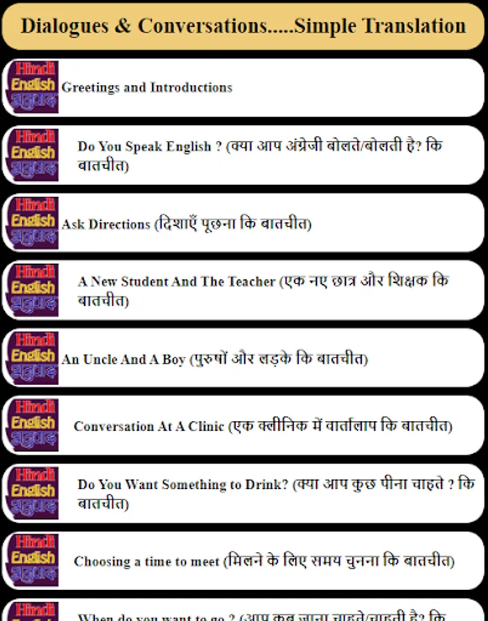 in this, you can get Every Kind of English Sentence and English Word Translation