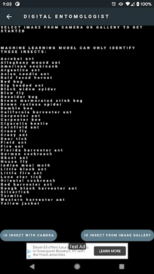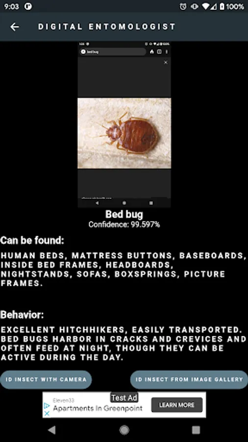 ID an insect from camera or select an image to analyze from your image gallery! ID'ing an insect also found in the reference guide automatically provides information on that pest.