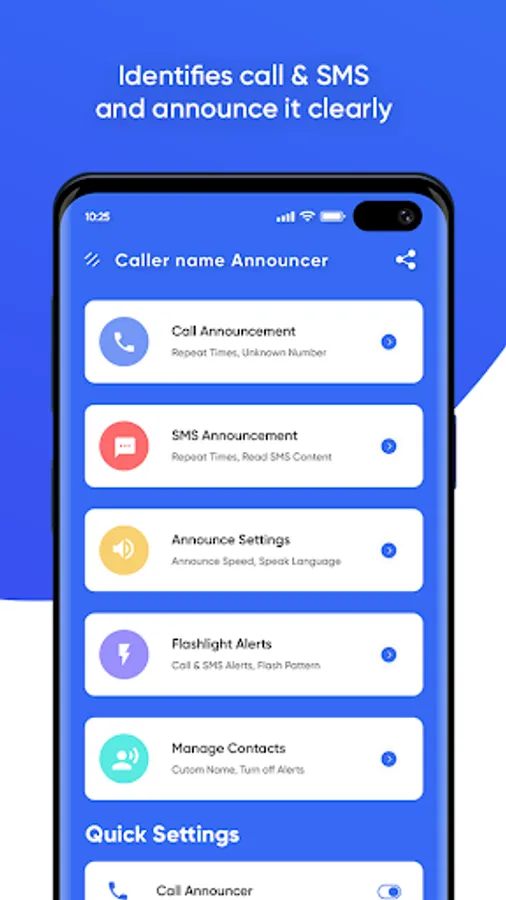 - Our Caller ID app identifies caller and text message sender and announce it loudly.