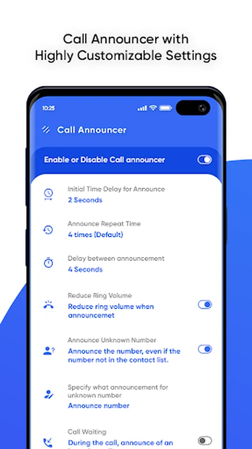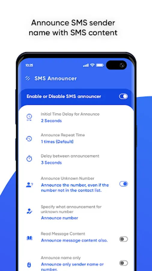 - One Tap to Caller Name Announcer to Disable/Enable Call and SMS features.