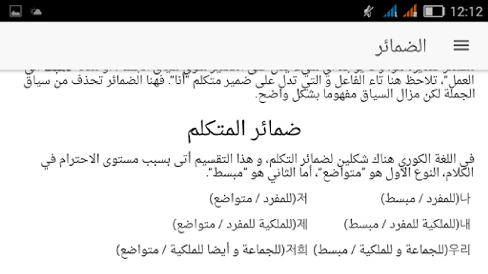 Korean language properties