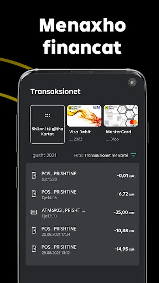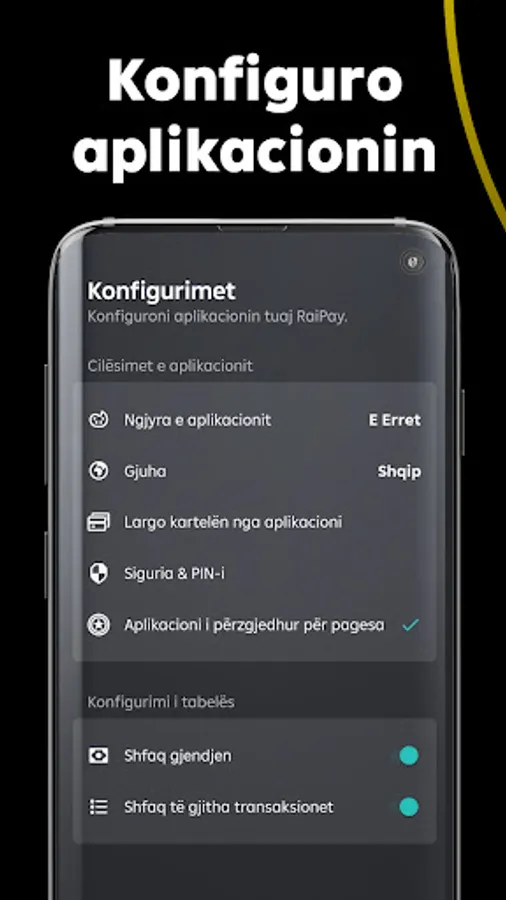 Sigurohuni që keni të aktivizuar opsionin NFC kur dëshironi të paguani me telefon. Ju mund të shihni në aplikacion listën e pagesave të iniciuara me kartele.