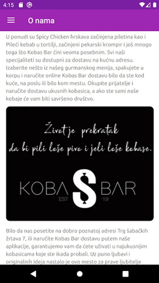 Sausage Bar is the only place in town where you can try the most delicious sausages ever. The combination of perfect kobay and cold beer is a winning combination for all those who know how to enjoy it. We recommend Bavarian sausage, Homemade, Curry, Sausage with cheese, Spicy or Sausage special, although whichever you choose there is nothing wrong. The offer includes Spicy Chicken crispy spicy chicken as well as Chicken kebab in tortilla, spicy baked potatoes and much more that makes Kobas Bar very special.