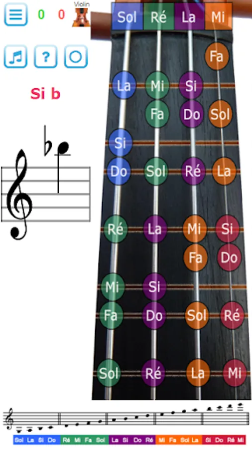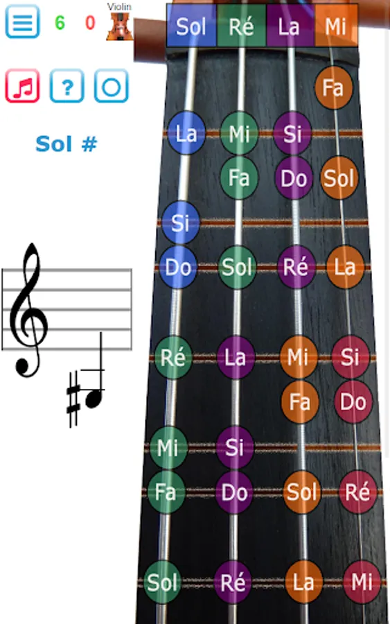 → Free-Play (touch) : Play on the screen fingerboard. Listen to the note sound and see it on the staff.