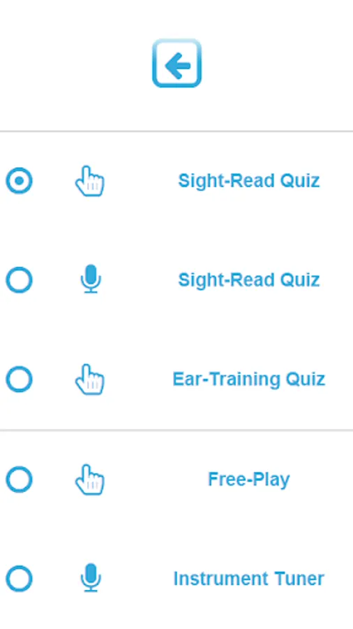 → Live Sight Read (Live) : Read the staff note, then play it using your real instrument. (This mode uses your device's microphone)