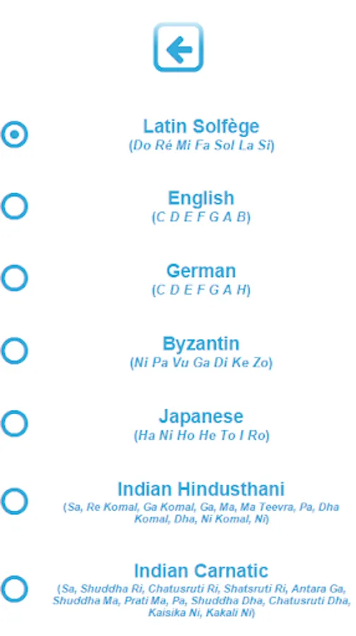 • Choice of notation systems : Solfège-Latin, English, German, Korean, Byzantine, Japanese, Indian (Hindusthani), Indian (Carnatic).