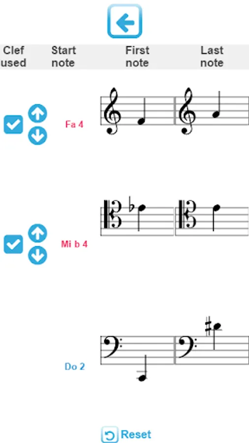 → Instrument Tuner (Live) : Play a note on your real instrument, the note is displayed on the staff. (This mode uses device's microphone)
