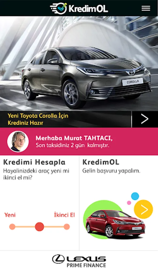 Do you need a car loan? Here, with KredimOL you can easily calculate your installments and quickly apply for a car loan. ALJ Finans grants new and used car loan under the names of Toyota Finans, Lexus Prime Finance and Otoshops Finans.