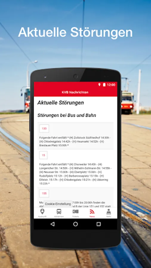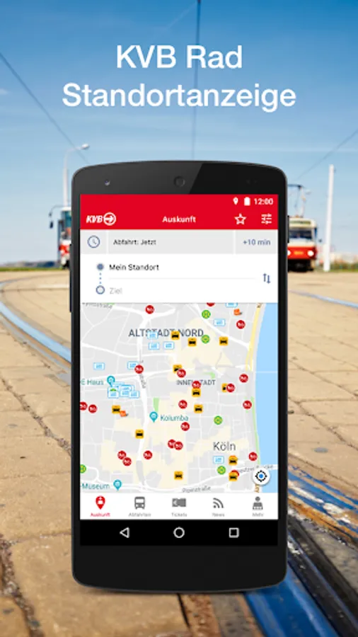 Beside the trip planner and discruption information you are able to get live data for your station. The KVB-App offers all information about KVB-Rad, Car-Sharing and Taxi-Ruf in Cologne.