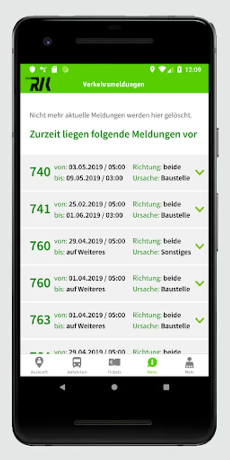 In addition to the timetable information and the traffic reports for the RVK, you can call up live information about your stop.