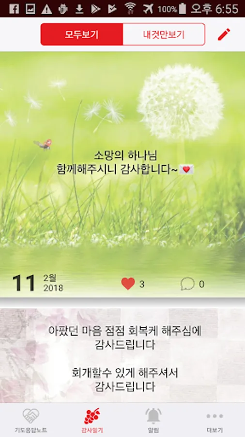 Create a prayer request, and God's record hasineunji how to respond. You can invite friends to pray together.