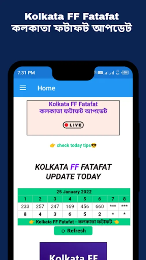 This app was originally created. You will also get daily hourly Kolkata FF tips and also to show you the published update of a quick contest prevailing in the city of Kolkata. Where the match is played in Kolkata city.And a lot of people play it. And check the published status by going online to get the status on time. For which one has to go from one website to another in a hurry.But this app will help you to get rid of that problem and get the first update.