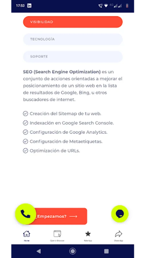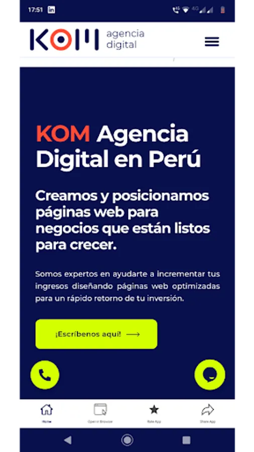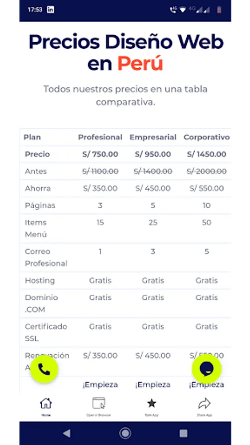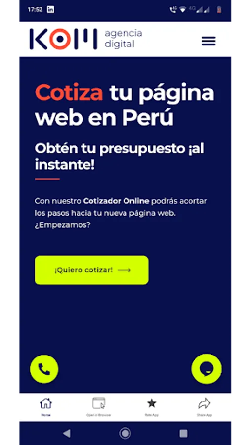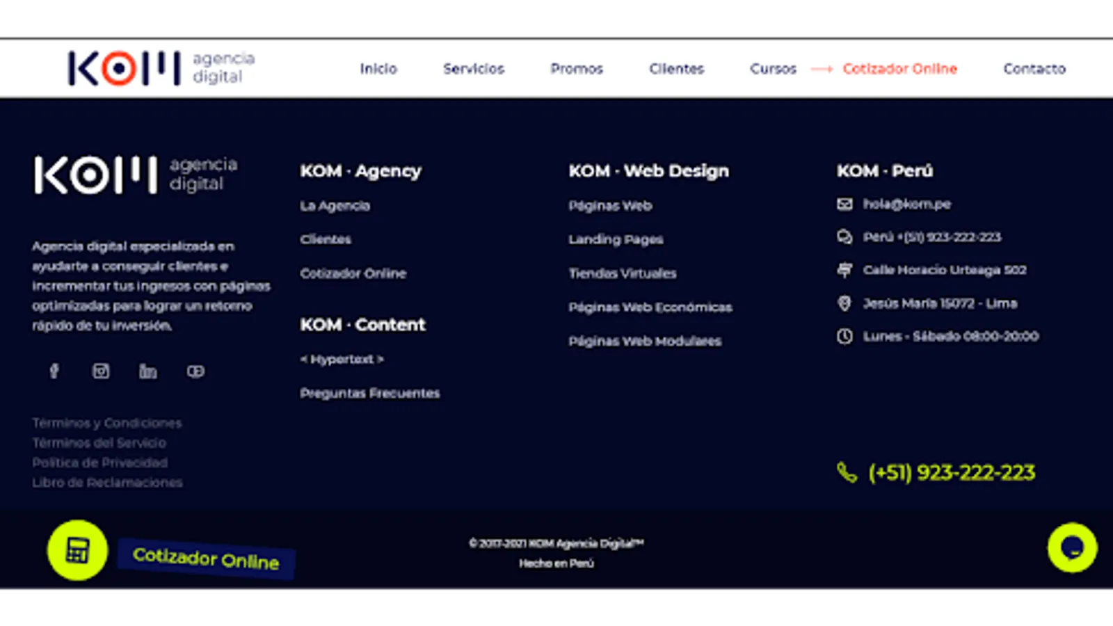 Peruvian Digital Agency specialized in creating pages optimized with SEO (Search Engine Optimization). In this app you will find our prices, clients and services that we provide in addition to our powerful Online Quote, which after selecting a few simple options, will send you a detailed quote to your WhatsApp of our Design and web positioning services, personalized and instantly. Prices are in Peruvian Soles.
