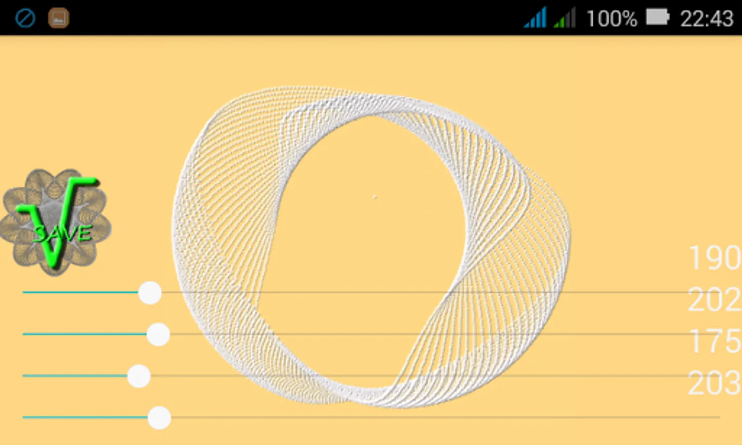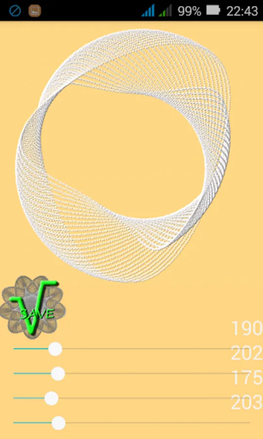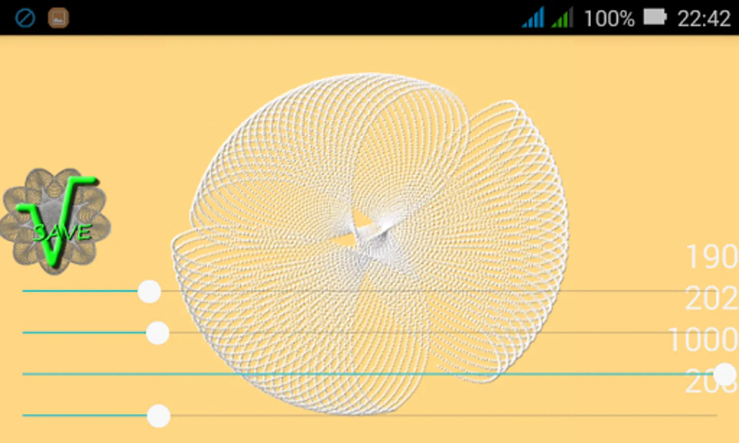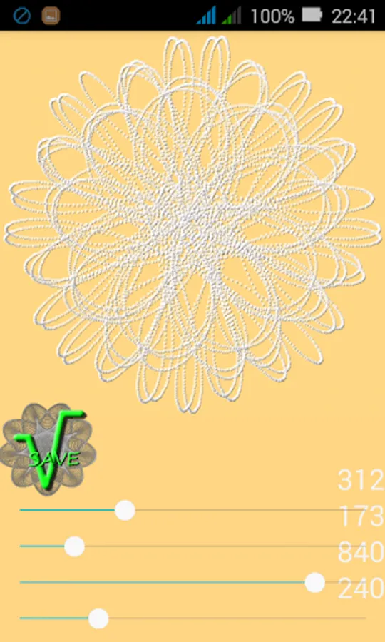 If you toutch the spirograph picture, the app will calculate 10000 steps. The pictures can be saved on SD card into the "Spirograph" directory