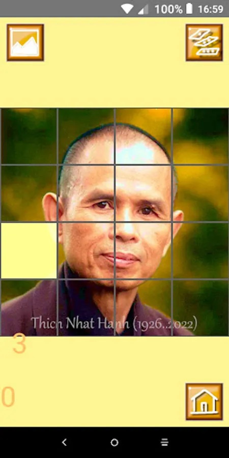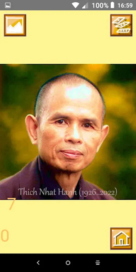 You can puzzle the image of Thich Nhat Hanh, or you can select a picuter from your gallery to puzzle. Have fun :-)
