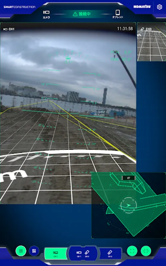 With the 2D mini map and HUD (head up display) display, the operator can check the current position of the construction machine on the drawing drawing, the direction such as the direction and attitude of the construction machine on the screen.