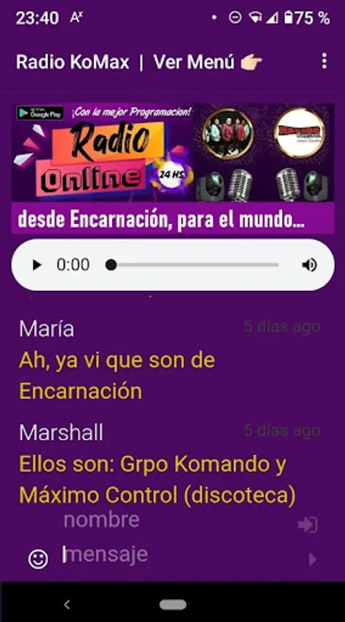 Radio KoMax is the union of Grupo Komando and Máximo Control Disco. They are here now to accompany you 24 hours.
