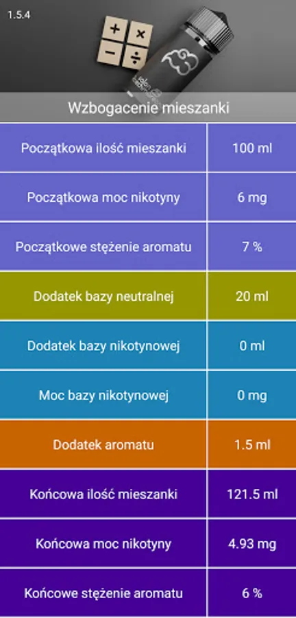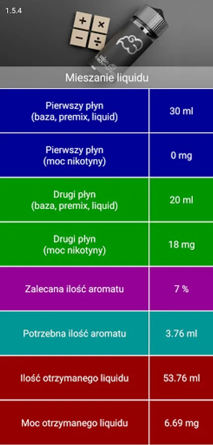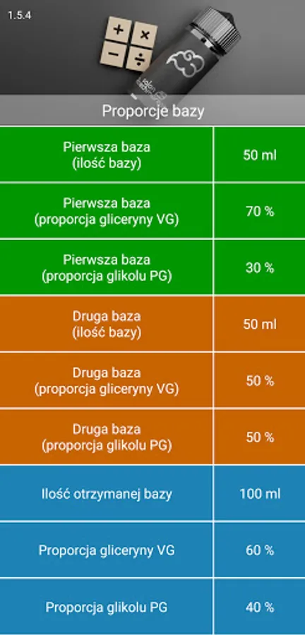 VapeBox is an application with a number of functions that facilitate, among others, creating the liquid yourself.