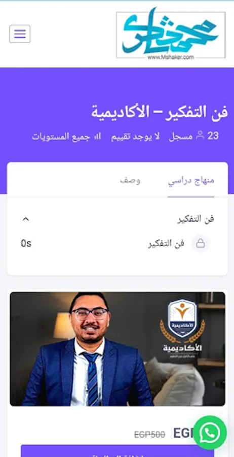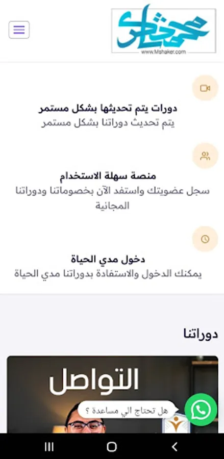 Trainer Mohamed Shaker's website application, through which you can manage your account and use the application to follow up on training courses