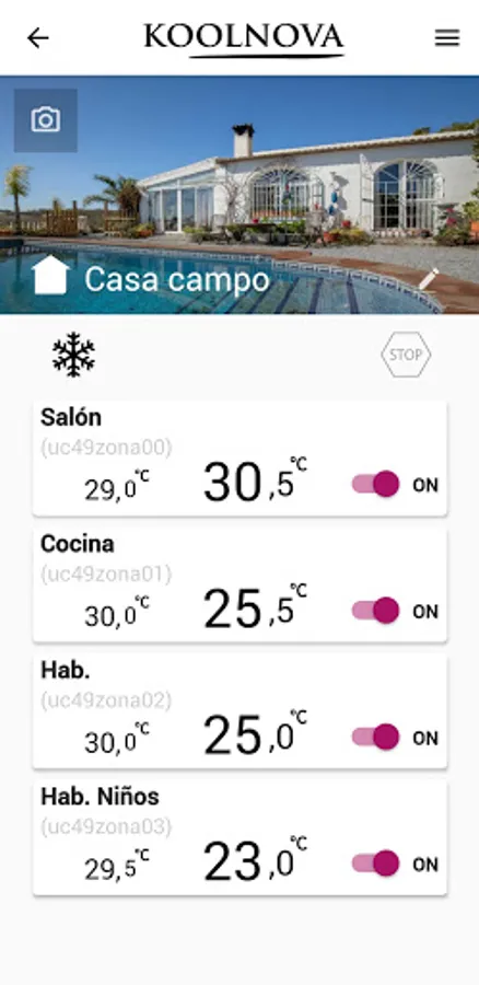 · Customize the name of each zone of the installation and each KOOLNOVA installation.