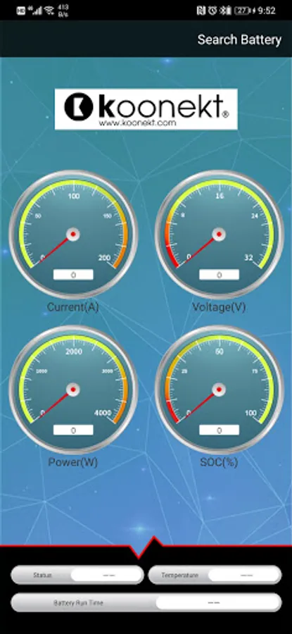 The Koonekt battery monitoring App allows the user to connect Koonekt Lithium battery to mobile phones, tablets to check real-time battery information including state of charge, voltage level, charge and discharge current levels, battery temperature, as well as providing battery run time calculation during discharge.