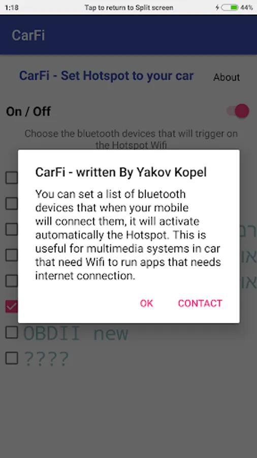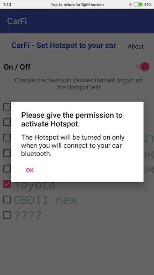 You can set a list of bluetooth devices that when your mobile will connect them, it will activate automatically the Hotspot. This is useful for multimedia systems in car that need Wifi to run apps that needs internet connection.