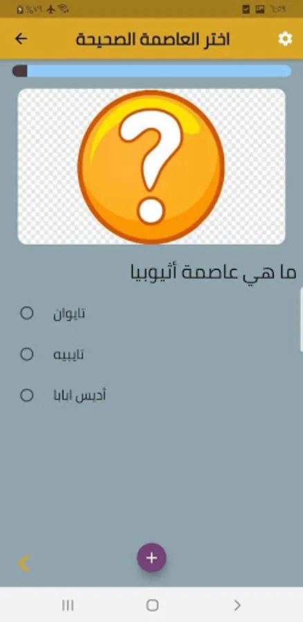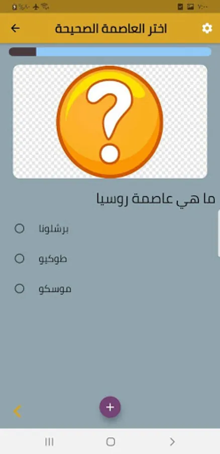 The application of selecting country capitals is an application dedicated to testing the strength of your memory by remembering the capitals of countries The application contains a question and several answers to the correct ones, including the wrong ones, you must choose the correct answer and at the end of the test your result is issued and the application of selecting country capitals contains Arab capitals and foreign capitals