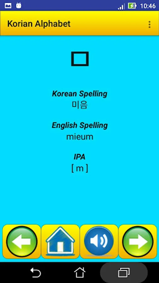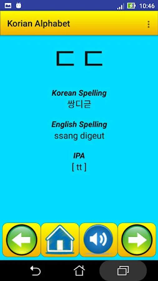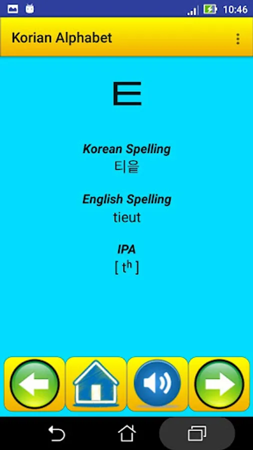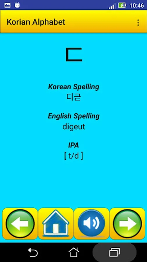 This app contain all Korean alphabet , exactly 40 letter , it help strangers students in Korea universities , for learning and speaking the alphabet and the pronunciation .