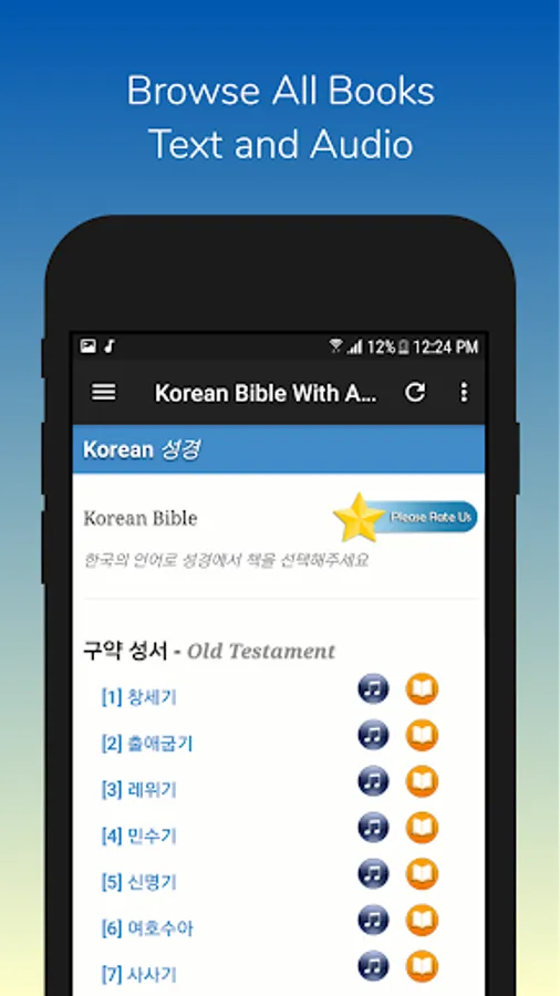 성경- Korean Bible – The Holy Bible in Korean language (Hangul). Enjoy this Korean Bible application in android, which contains the Old Testament and New Testament with text and audio version in Korean language.
