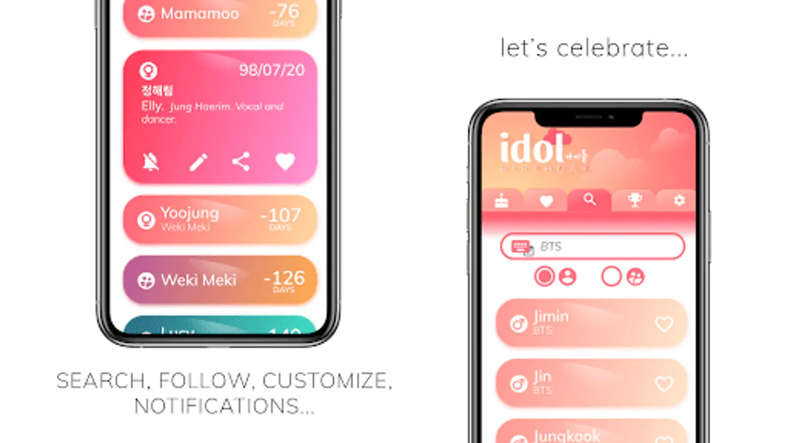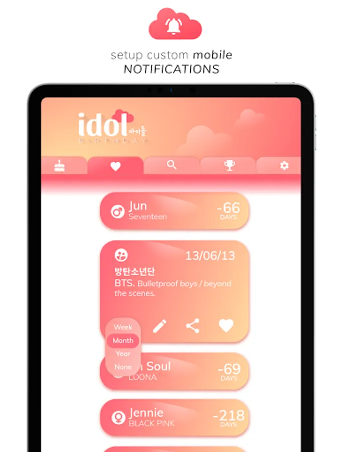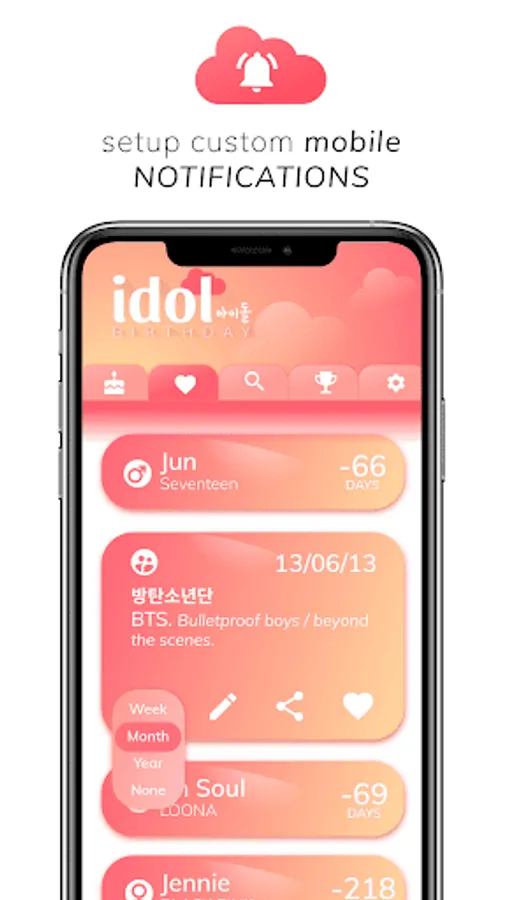 • Set a custom countdown notification for your idol kpop bias.