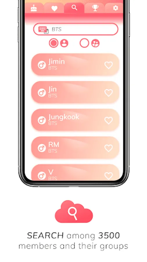• Search kpop idols in our Data Base (More than 1500).