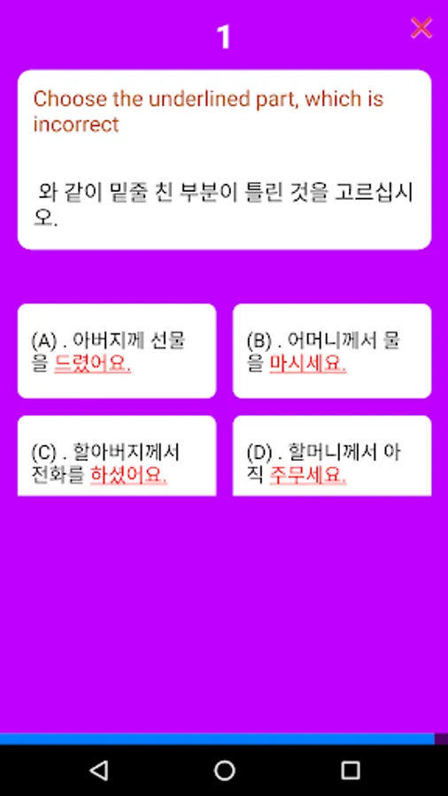 Korean Fun Quizzes Game prepares the necessary skills for you so that you will have no difficulty in doing the real test.