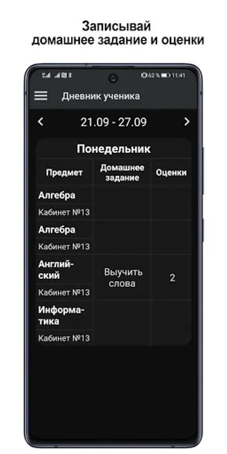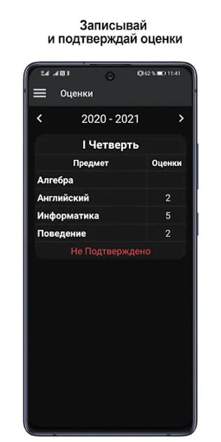 - хранить в себе все оценки на любой день недели, а так же четвертные, годовые, экзаменационные и итоговые, подтверждая их в приложении путем добавления фотографии росписи учителя или записи его голоса, дабы у ваших родителей не возникал вопрос об их достоверности, с возможностью указывать начало учебного года, количество четвертей и отключать годовые, экзаменационные или итоговые оценки