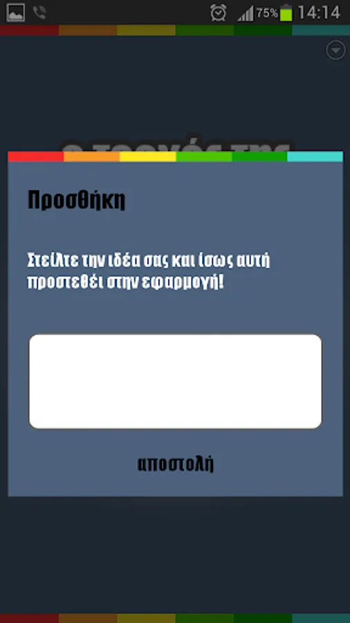 For questions, new categories have thought possible or any comment or review, please contact me via the special section of the application (by clicking on the menu button on the device home screen and select "Add") or directly to email stavroulakis06157 @ gmail. com!