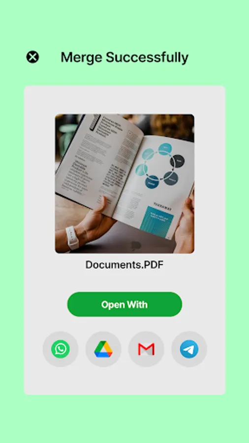 With this Combine PDF - Merge & Split App you can easily share edited PDFs with friends, family, or colleagues via email, Bluetooth, or apps.