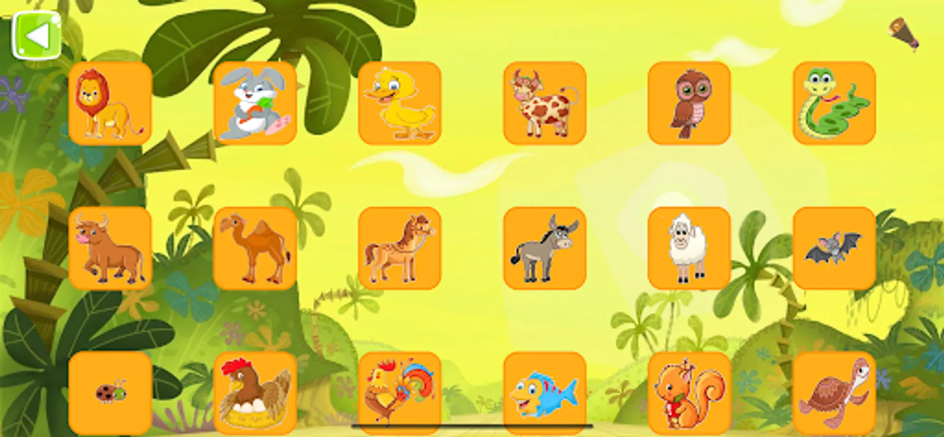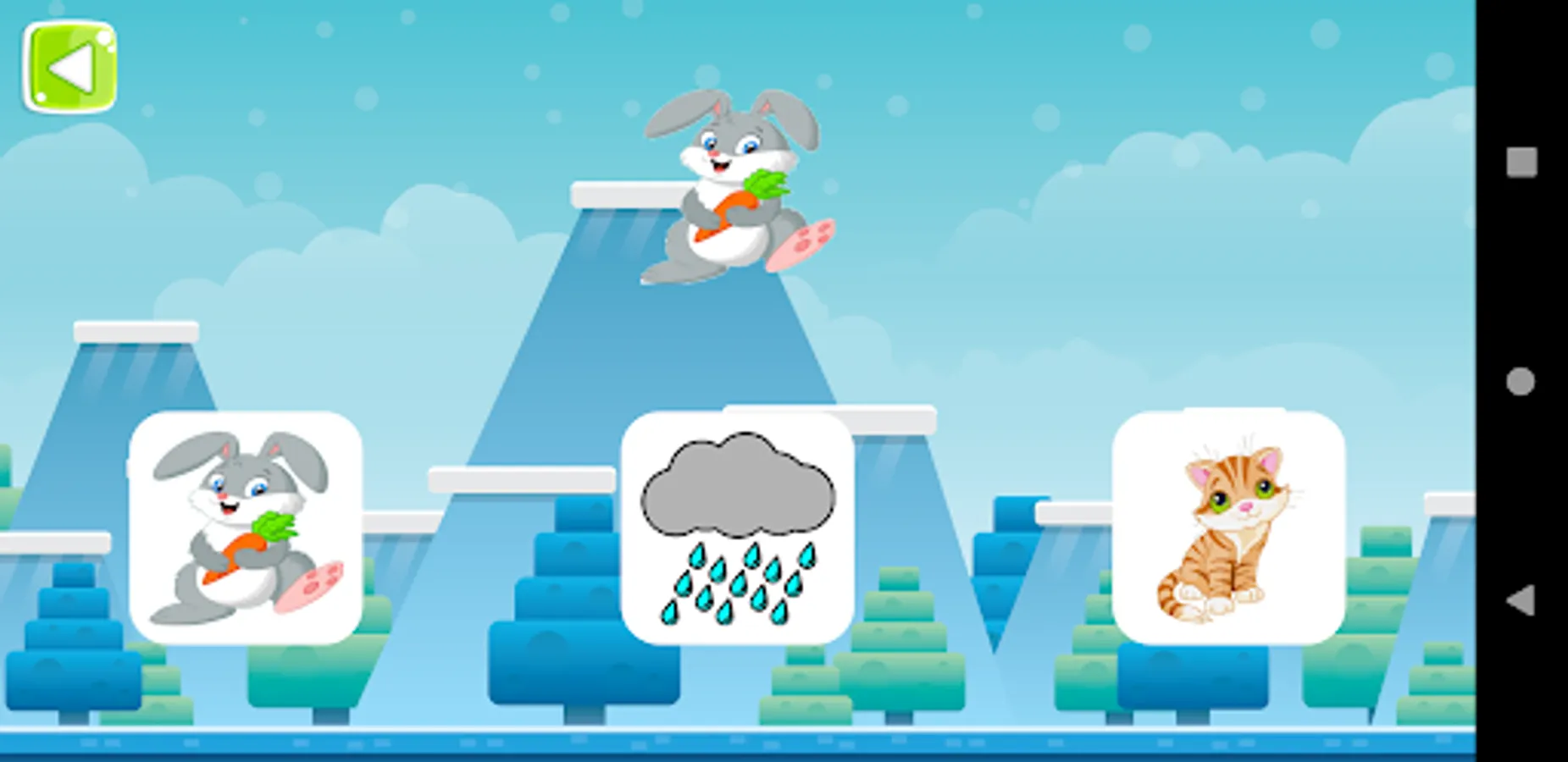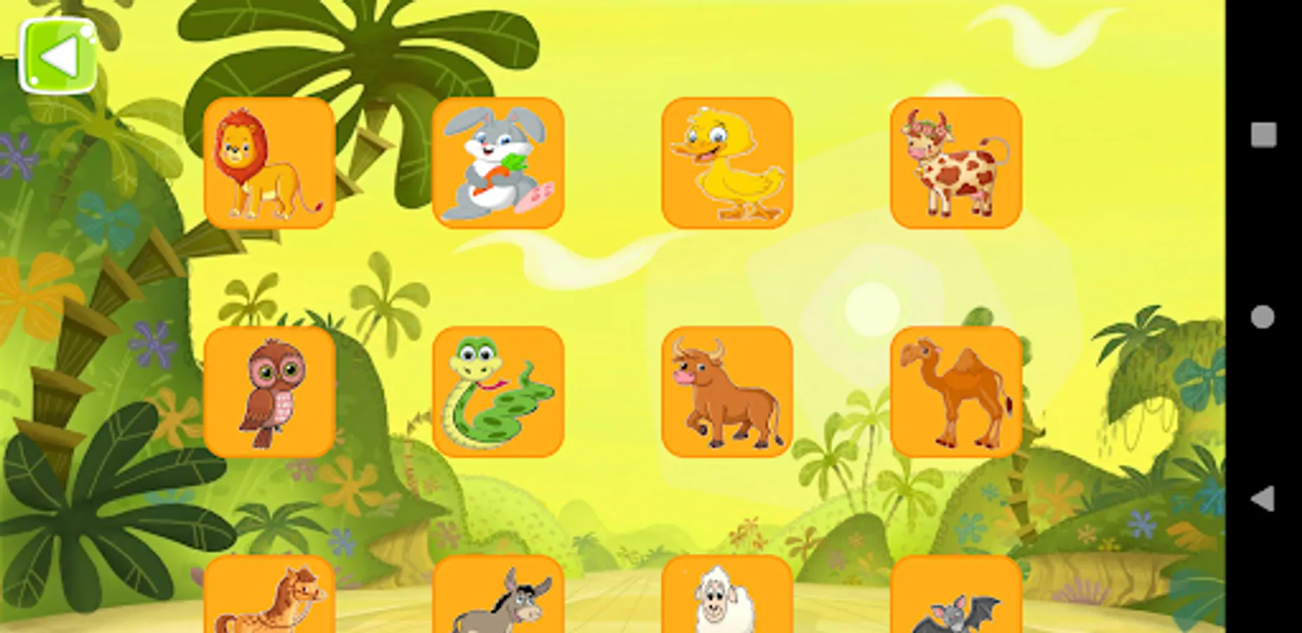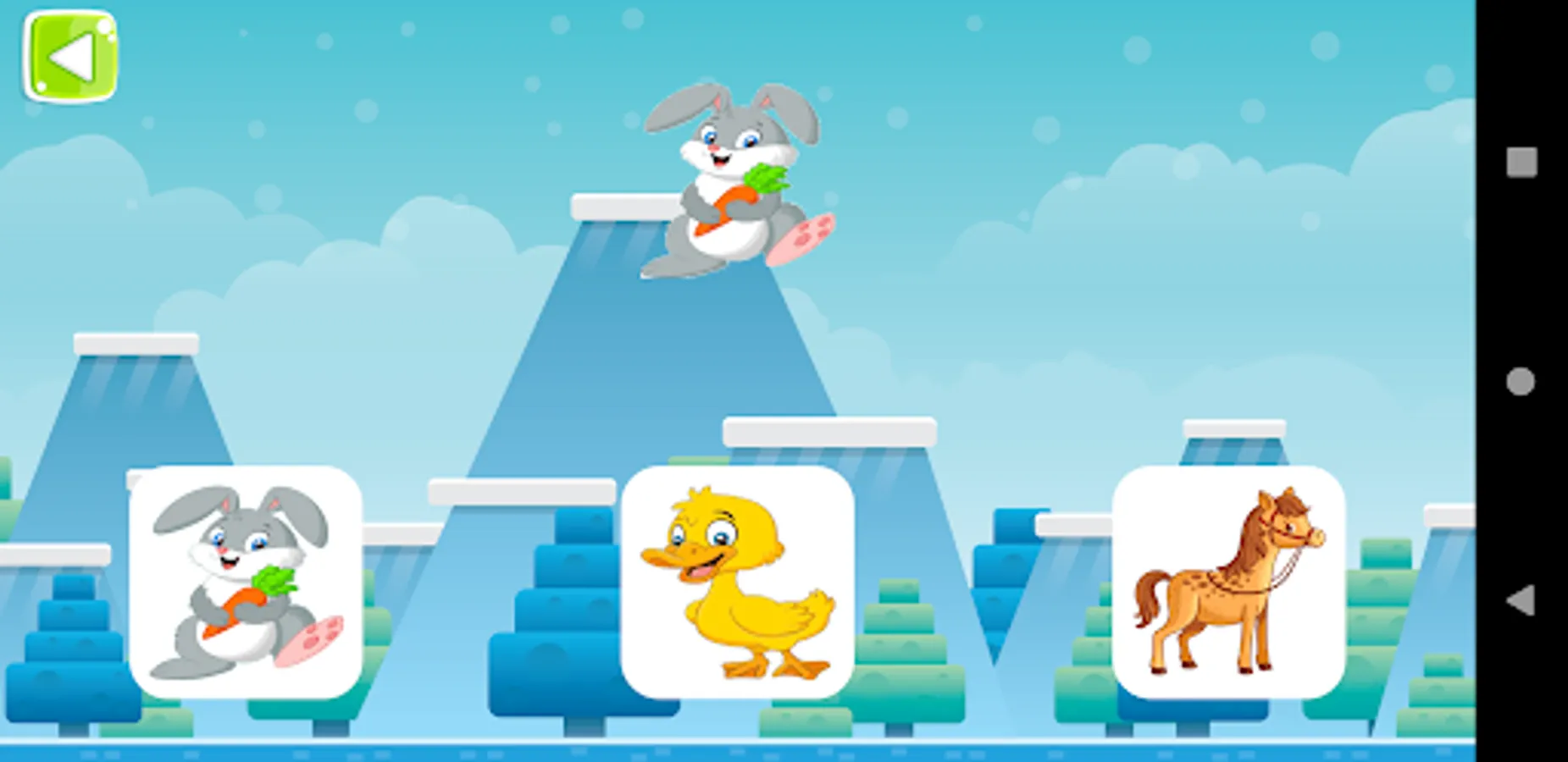 The application also contains teaching the names of animals and animal sounds, teaching fruits and vegetables for children, teaching Arabic numbers, teaching counting, teaching numbers, teaching alphabets for young children, and a competition for teaching shapes in order for your son to distinguish between different shapes.
