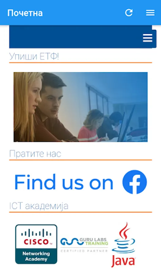 The application offers the possibility of faster access to the website of the Faculty of Electrical Engineering, University of Banja Luka, the bulletin board, the Moodle site, the student service and the teaching schedule.