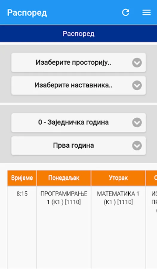 The application uses data from the eFee service, Faculty of Electrical Engineering in Banja Luka. [efee.etf.unibl.org]