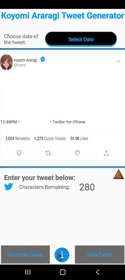 This simple app lets you choose a date and a customized twitter message and creates a meme that looks as though Koyomi Araragi tweeted the message.