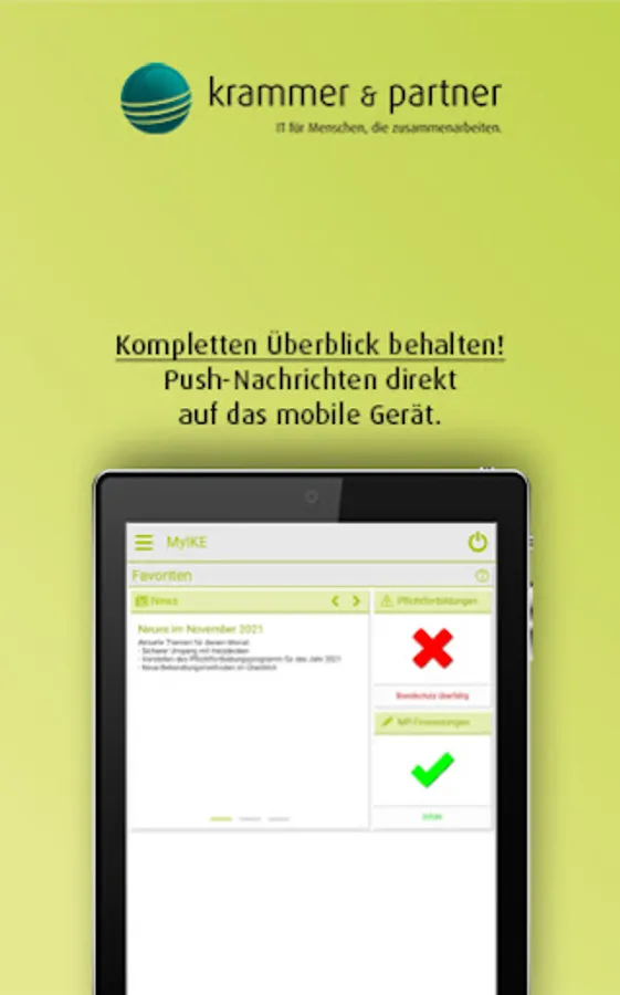 The main advantage of MyIKE lies in the interface-free interaction with the Krammer & Partner management systems. All released information is presented in real time in a personalized way for the end user - without duplicate data storage and transmission errors. The employee portal MyIKE expands the functions and the group of users of the personnel management system Personal-Office as well as the training, further education and training system planACAD. In addition, all users in MyIKE can communicate with one another so that information is immediately available regardless of time and place. With just a few clicks you can distribute important information and news throughout the company.
