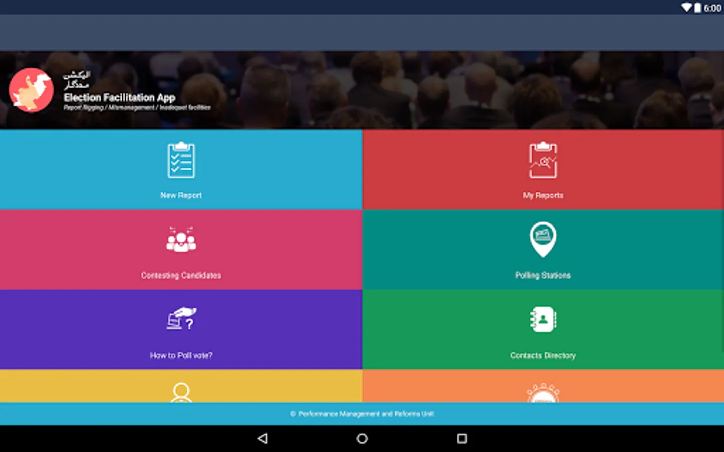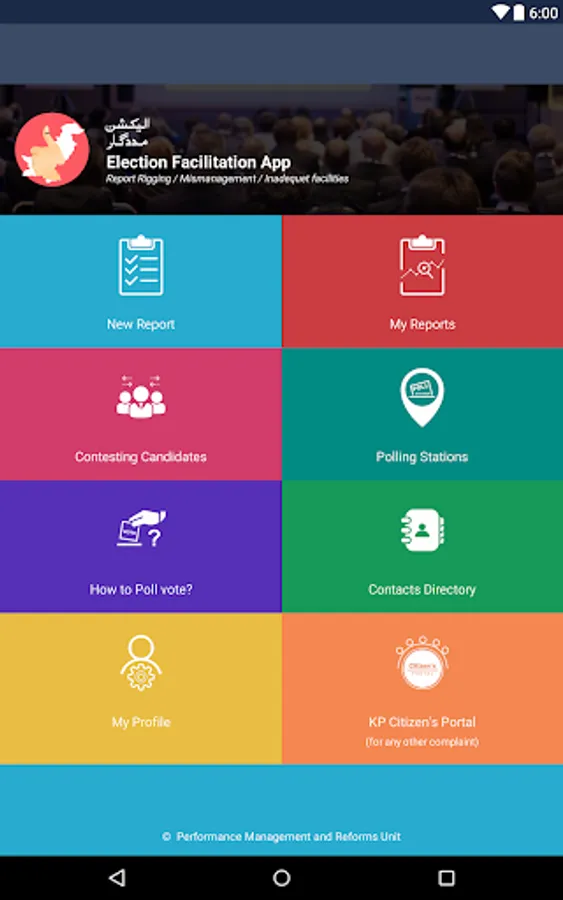 An initiative of Government to Khyber Pakhtunkhwa to empower and facilitate the general public to report the violation of General Election 2018 code of conduct. The citizen will be able to report a complaint, rigging, violation of political parties in the display of banner, posters etc. In addition, the citizen can find the nearest polling stations, contact directory of district administration, monitoring officers, and regional election officers, How to poll vote, candidates appearing in a particular constituency.