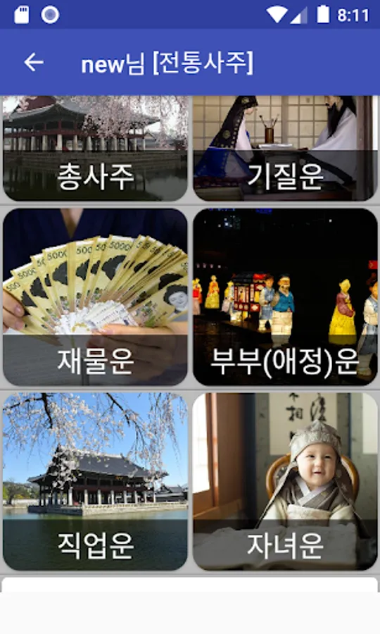 Traditional Saju: You can see your traditional total Saju, temperament, wealth, marital luck, job luck, and child luck.