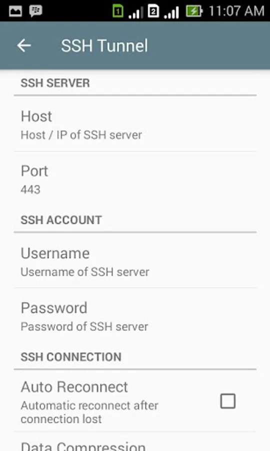 - Support UDP Protocol (Voice Call / Video Call / Broadcast) but SSH Server need UDPGW from BadVpn