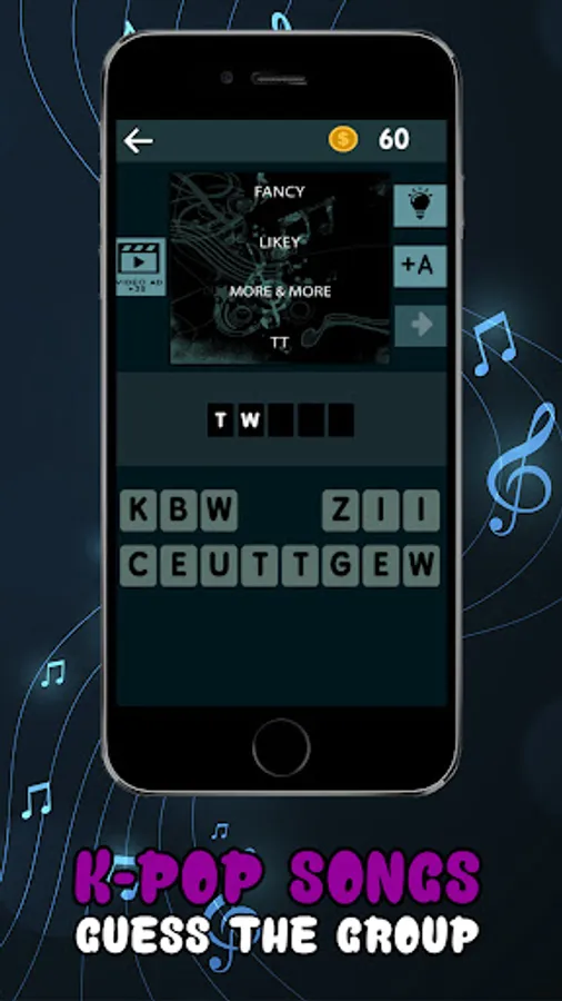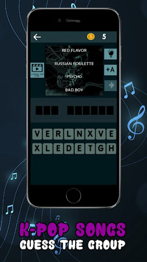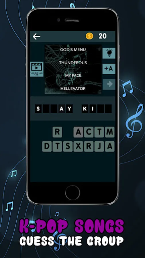 The game mechanics are very simple: four K-pop songs are presented, and the player's objective is to associate them with the corresponding K-pop group and proceed to type their name in the designated space. Each correct answer awards coins that can be used by the player to purchase clues, helping them relate those lesser-known K-pop songs to their respective groups.